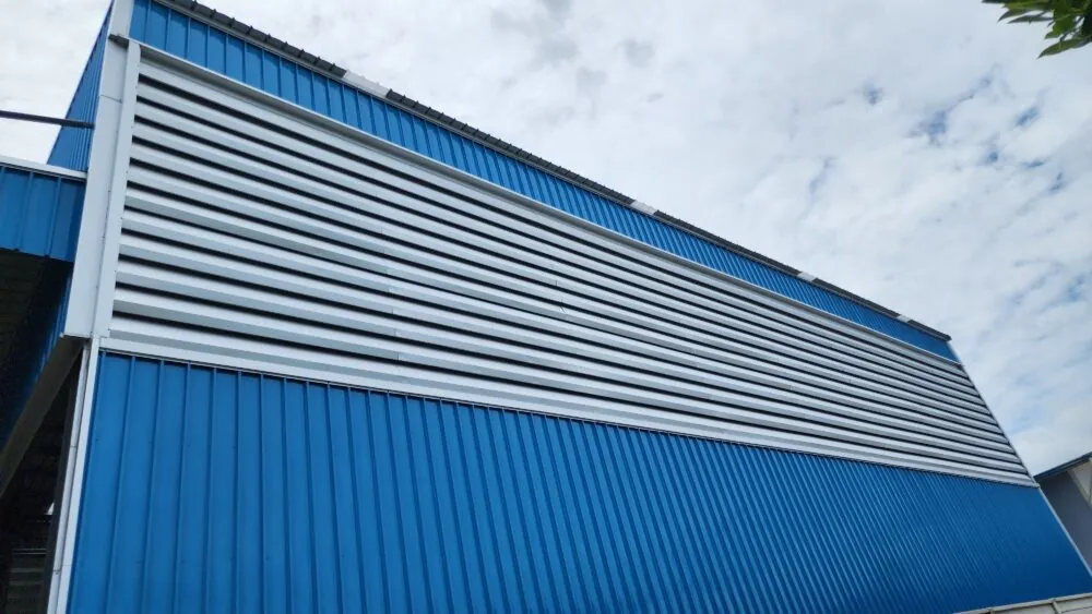เพิ่มการถ่ายเทอากาศ ลดกลิ่นอับภายในอาคาร ช่วยให้การทำงานของพนักงานภายในอาคารเป็นไปอย่างราบรื่น - กันสาด 2 ชุด เมทัลชีท หนา 0.40 mm.